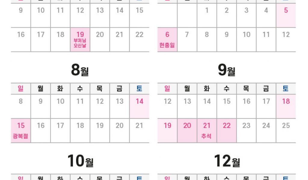 부처님 오신날을 제외하고는 현충일부타 광복절, 개천절, 한글날에 크리스마스까지 모두 주말입니다.